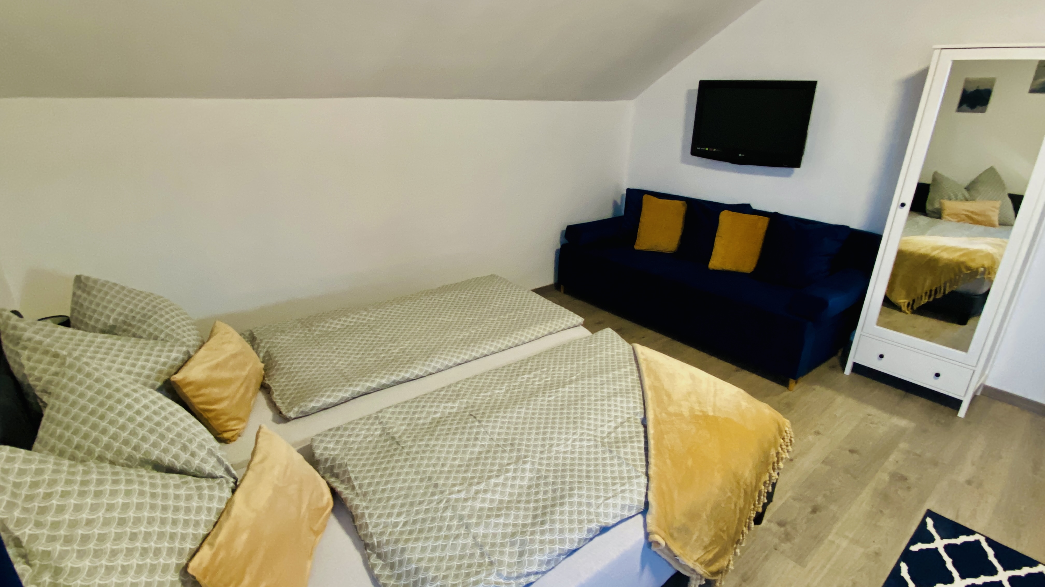 Fedezze fel modern, légkondicionált apartmanunkat, amely központi elhelyezkedésével és hangulatos atmoszférájával várja! Két fő részére ideális, pótágyazható opcióval, hogy barátaival vagy családjával együtt élvezhesse a pihenést.