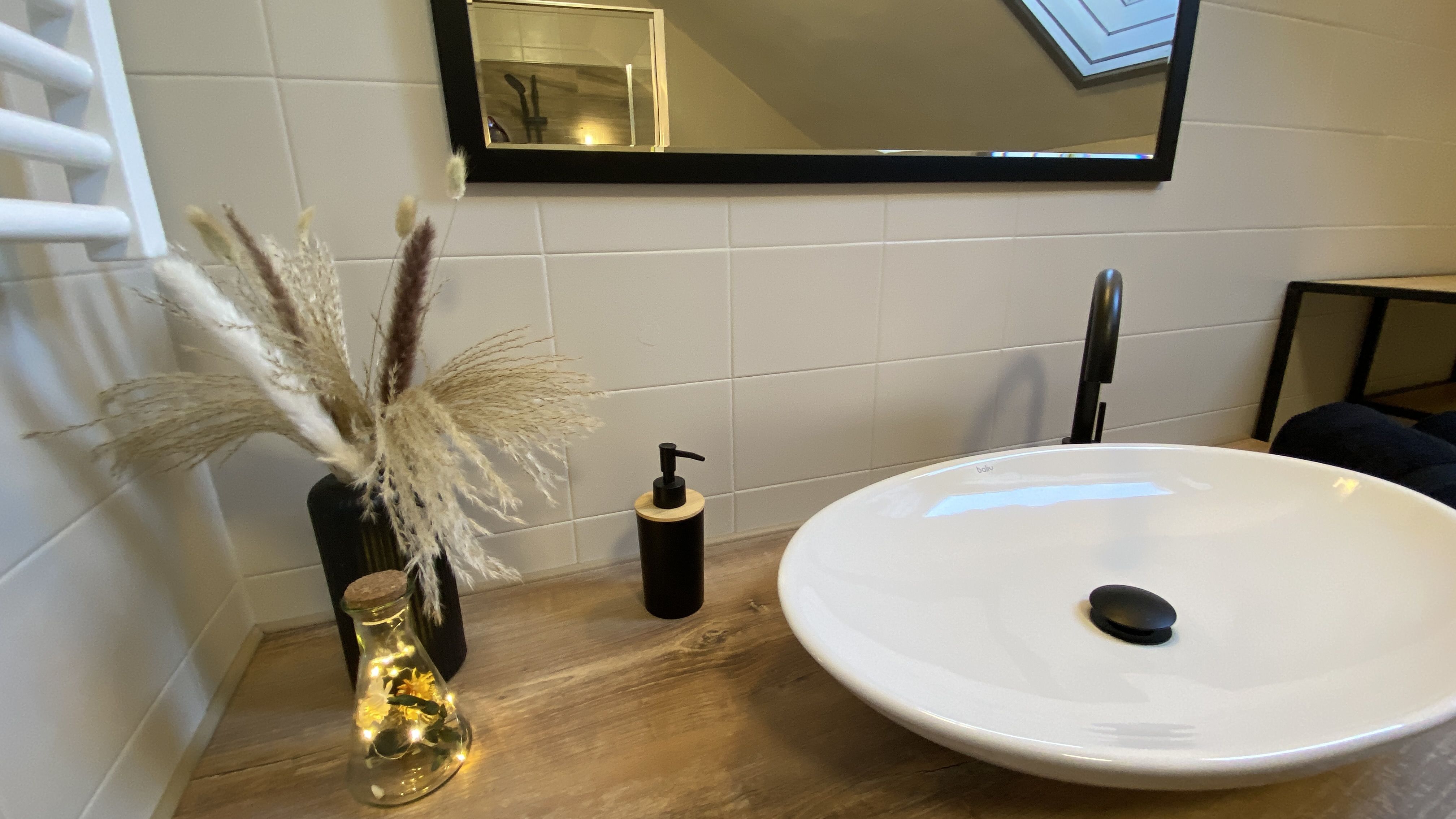 A hangulatos zuhanyzós fürdőszoba pedig a tökéletes hely a relaxációra.